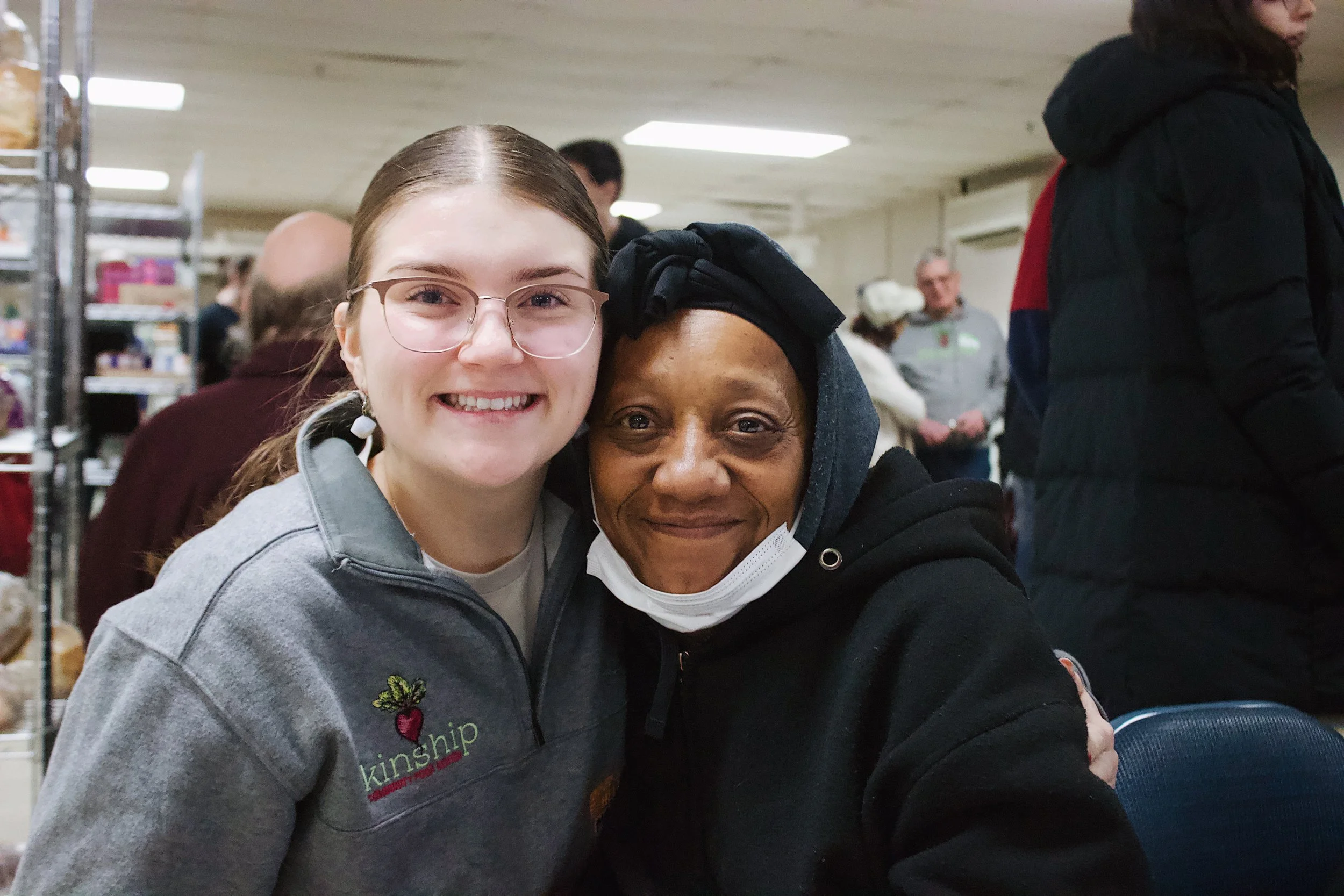 For our working-age shopper population – two-thirds of our shoppers are underemployed – the majority are paying half of their monthly income on rent. This is why Kinship walks with more than 50 families battling eviction each year, among other struggles many of us thankfully can’t fathom. Kinship is also grateful to connect dozens of community members each year to community resources and to jobs and training programs that help them earn a few hundred dollars more each month.